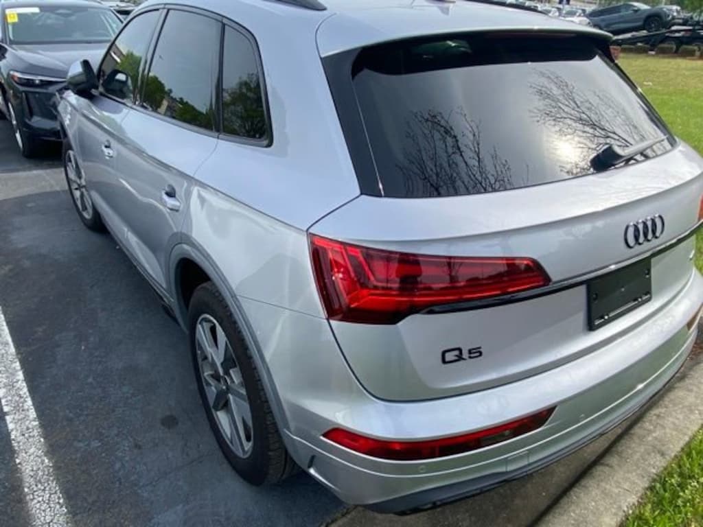 Florett Silver Metallic 2025 Audi Q5 40 Premium quattro quattro 7-Speed Automatic S tronic 2.0L Turbocharged Atlas Beige w/Leather Seating Surfaces, AM/FM Stereo, Auto High-beam Headlights, Automatic temperature control, Brake assist, Electronic Stability Control, Four wheel independent suspension, Front dual zone A/C, Front fog lights, Heated Front Seats, Leather Seating Surfaces, Power driver seat, Power Liftgate, Power passenger seat, Rain sensing wipers, Rear air conditioning, Rear window wiper, Remote keyless entry, Speed-sensing steering, Speed-Sensitive Wipers, Split folding rear seat, Steering wheel mounted audio controls, Traction control, Wheels: 18" 5-Arm-Star Design.