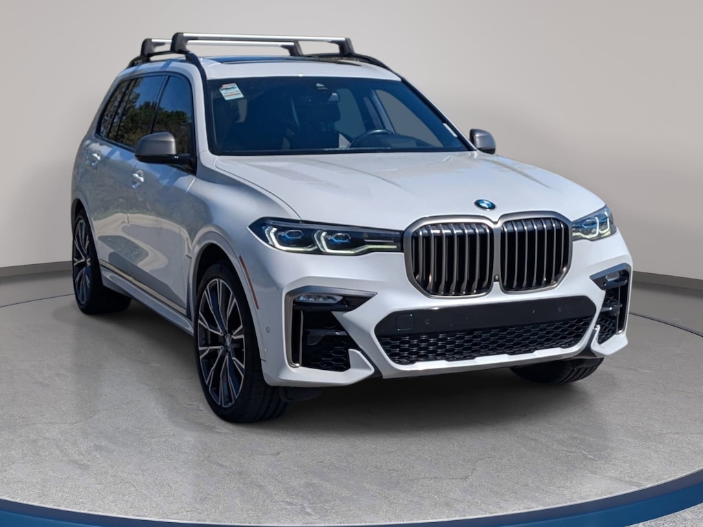 Clean CARFAX. White Metallic 2020 BMW X7 M50i AWD 8-Speed Automatic 4.4L V8 DOHC 32V Non Smoker, Local Trade, 5-Zone Automatic Climate Control, Cold Weather Package, Executive Package, Front & Rear Heated Seats, Glass Controls, Heated & Cooled Cup Holders, Heated Front Seats Armrests & Steering Wheel, Navigation System, Panoramic Sky Lounge LED Roof, Wheels: 22" x 9.5" Fr & 22" x 10.5" Rr Y-Spoke.