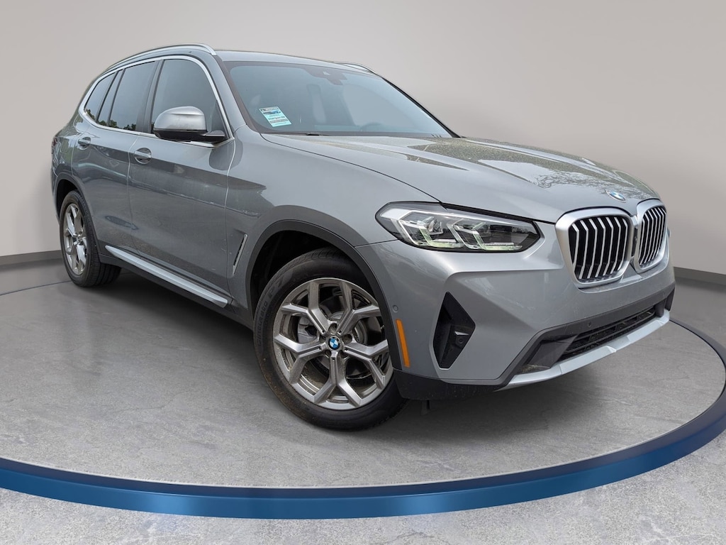 Skyscraper Gray Metallic 2024 BMW X3 sDrive30i RWD 8-Speed Automatic Sport I4 12 Speakers, Active Park Distance Control, Automatic temperature control, Exterior Parking Camera Rear, Four wheel independent suspension, Fully automatic headlights, Garage door transmitter, Genuine wood dashboard insert, Genuine wood door panel insert, Heated Front Seats, Heated Steering Wheel, Live Cockpit Pro w/Navigation, Memory seat, Navigation System, Outside temperature display, Panoramic Moonroof (ZPA), Parking Assistance Package, Parking Assistant Plus, Perforated SensaTec Upholstery, Power driver seat, Power Liftgate, Premium Package w/ZPA, Radio data system, Rain sensing wipers, Rear air conditioning, Remote keyless entry, Security system, Speed-sensing steering, Sport steering wheel, Steering wheel mounted audio controls, Surround View w/3D View, Traction control, Trailer Hitch, Wheels: 19" x 7.5" Y-Spoke (Style 693), Wireless Charging.