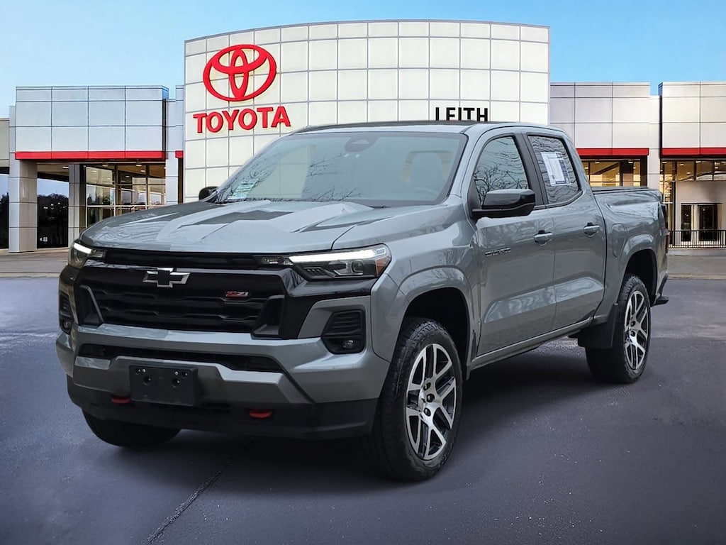 Clean CARFAX. Sterling Gray Metallic 2023 Chevrolet Colorado Z71 4WD 8-Speed Automatic 2.7L Turbo LOCAL TRADE IN, OWNED BY DEALER, LEATHER, HEATED SEATS, PRE-COLLISION SYSTEM W PEDESTRIAN DETECTION, LANE DEPARTURE ALERT W STEERING ASSIST, 4WD, 6-Speaker Audio System Feature, 8-Way Power Driver Seat Adjuster, ABS brakes, Advanced Trailering Package, Air Conditioning, Apple CarPlay/Android Auto, Auto High-beam Headlights, Blind Zone Steering Assist, Brake assist, Chevy Safety Assist, Compass, Driver & Front Passenger Ventilated Seats, Driver Memory Settings, Driver Seatback Map Pocket, Dual-Zone Automatic Air Conditioning, Electronic Automatic Cruise Control, Electronic Stability Control, EZ-Lift & Lower Tailgate, Front fog lights, Front wheel independent suspension, Heated Driver & Front Passenger Seats, Heated Steering Wheel, Heavy-Duty Trailering Package, Inside Rear-View Auto-Dimming Mirror, Integrated Trailer Brake Controller, IntelliBeam Automatic High Beam On/Off, Lane Keep Assist w/Lane Departure Warning, Navigation System, Off-Road Assist Steps (LPO), Outside temperature display, Passenger Seatback Map Pocket, Perforated Leather-Appointed Seat Trim, Power Driver Lumbar Control Seat Adjuster, Preferred Equipment Group 4Z7, Radio: 11.3 Diagonal Advanced Color LCD Display, Rear Center Armrest, Rear Cross Traffic Braking, Rear Park Assist, Rear window defroster, Rear-Window Electric Defogger, Remote Vehicle Starter System, Safety Package, SiriusXM Radio, Speed-sensing steering, Steering Wheel Mounted Audio Controls, StowFlex Tailgate Storage Compartment, Tailgate Keyed Cylinder Lock, Tilt & Telescoping Steering Column, Traction control, Trailering App, Wheels: 20 x 9 Dark Android Aluminum, Wireless Charging, Wireless Phone Projection, Z71 Convenience Package II, Z71 Convenience Package III.