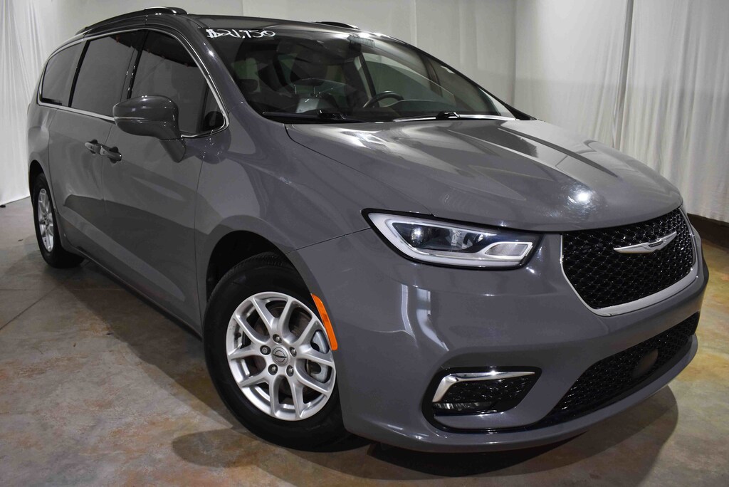 Clean CARFAX. CARFAX One-Owner. Ceramic Gray Clearcoat 2022 Chrysler Pacifica Touring L FWD 9-Speed 948TE Automatic 3.6L V6 24V VVT 10.1" Touchscreen Display, 17" x 7.0" Aluminum Wheels, 3.25 Axle Ratio, 3rd row seats: split-bench, 4-Wheel Disc Brakes, 6 Speakers, ABS brakes, Air Conditioning, Alloy wheels, AM/FM radio: SiriusXM, Apple CarPlay, Apple CarPlay/Android Auto, Auto-dimming Rear-View mirror, Automatic temperature control, Black Seats, Brake assist, Bumpers: body-color, Compass, Delay-off headlights, Disassociated Touchscreen Display, Driver's Seat Mounted Armrest, Dual front impact airbags, Dual front side impact airbags, Electronic Stability Control, For More Info, Call 800-643-2112, Four wheel independent suspension, Front anti-roll bar, Front dual zone A/C, Front fog lights, Fully automatic headlights, Garage door transmitter, Google Android Auto, GPS Antenna Input, Heated door mirrors, Heated front seats, Heated steering wheel, Integrated Active Noise Cancellation, Integrated Center Stack Radio, Knee airbag, Low tire pressure warning, Memory seat, Occupant sensing airbag, Outside temperature display, Overhead airbag, Overhead console, Panic alarm, ParkSense Rear Park Assist w/Stop, ParkView Rear Back-Up Camera, Passenger seat mounted armrest, Perforated Leather Trim Bucket Seats, Power door mirrors, Power driver seat, Power Liftgate, Power steering, Power windows, Quick Order Package 27L, Radio data system, Radio: Uconnect 5 w/10.1" Display, Rain sensing wipers, Rear air conditioning, Rear window defroster, Rear window wiper, Reclining 3rd row seat, Remote keyless entry, Roof rack, Safety Sphere Unavailable, Security system, SiriusXM Radio Service, SiriusXM Satellite Radio, Speed control, Split folding rear seat, Spoiler, Steering wheel mounted audio controls, Tachometer, Telescoping steering wheel, Tilt steering wheel, Touring Suspension, Traction control, Trip computer, Turn signal indicator mirrors, USB Host Flip, Variably intermittent wipers, Voltmeter.