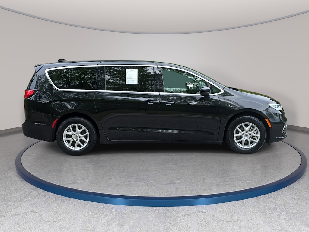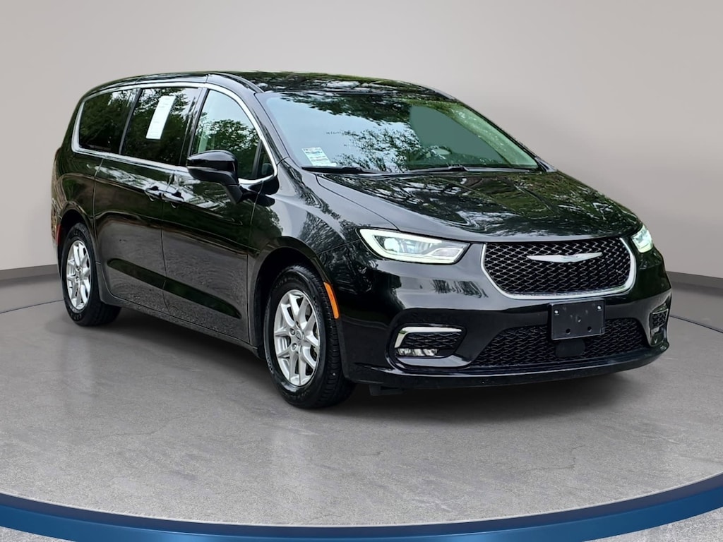 CARFAX One-Owner. Brilliant Black Crystal Pearlcoat 2023 Chrysler Pacifica Touring L FWD 9-Speed 948TE Automatic 3.6L V6 24V VVT LOCAL TRADE IN, BACK OF CAMERA, LEATHER, THIRD ROW SEAT, SMART KEY W PUSH BUTTON START, LANE DEPARTURE ALERT W STEERING ASSIST, APPLE CARPLAY & ANDROID AUTO, BLIND SPOT MONITOR, MUST SEE TO APPRECIATE!, 10.1 Touchscreen Display, 17 x 7.0 Aluminum Wheels, ABS brakes, Air Conditioning, Apple CarPlay/Android Auto, Automatic temperature control, Compass, Delay-off headlights, Disassociated Touchscreen Display, Four wheel independent suspension, Front dual zone A/C, Fully automatic headlights, Heated steering wheel, Integrated Active Noise Cancellation, Memory seat, Outside temperature display, Passenger seat mounted armrest, Power driver seat, Power Liftgate, Power steering, Power windows, Quick Order Package 27L, Rear air conditioning, Rear window defroster, Reclining 3rd row seat, Remote keyless entry, Split folding rear seat, Steering wheel mounted audio controls, Telescoping steering wheel, Traction control, Turn signal indicator mirrors.