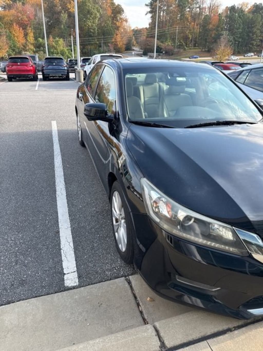 Black 2013 Honda Accord EX-L FWD 2.4L I4 DOHC i-VTEC 16V Ivory w/Perforated Leather-Trimmed Seats, 17" Alloy Wheels, Auto-dimming Rear-View mirror, Front dual zone A/C, Front fog lights, Heated Front Bucket Seats, Memory seat, Radio: 360-Watt AM/FM/CD Premium Audio System, Steering wheel mounted audio controls.