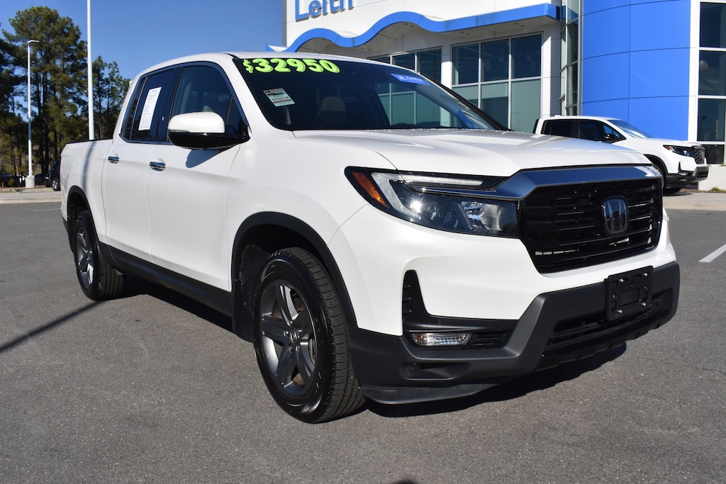 Clean CARFAX. CARFAX One-Owner. Certified. Platinum White Pearl 2023 Honda Ridgeline RTL-E AWD 9-Speed Automatic 3.5L V6 SOHC i-VTEC 24V 4-Wheel Disc Brakes, 4.33 Axle Ratio, 8 Speakers, ABS brakes, Air Conditioning, Alloy wheels, AM/FM radio: SiriusXM, Apple CarPlay/Android Auto, Auto High-beam Headlights, Auto-dimming Rear-View mirror, Automatic temperature control, Blind Spot Information (BSI) System warning, Bluetooth® Hands-Free Link, Brake assist, Bumpers: body-color, Compass, Delay-off headlights, Driver's Seat Mounted Armrest, Dual front impact airbags, Dual front side impact airbags, Electronic Stability Control, Exterior Parking Camera Rear, Four wheel independent suspension, Front anti-roll bar, Front dual zone A/C, Front fog lights, Fully automatic headlights, Garage door transmitter: HomeLink, Heated door mirrors, Heated Front Bucket Seats, Heated front seats, Heated steering wheel, Honda Satellite-Linked Navigation System, Illuminated entry, Leather Seat Trim, Low tire pressure warning, Memory seat, Navigation system: Honda Satellite-Linked Navigation System, Occupant sensing airbag, Outside temperature display, Overhead airbag, Overhead console, Panic alarm, Passenger door bin, Passenger seat mounted armrest, Power door mirrors, Power driver seat, Power moonroof, Power passenger seat, Power steering, Power windows, Radio data system, Radio: 540-Watt Premium Audio System w/8 Speakers, Rear air conditioning, Rear anti-roll bar, Rear step bumper, Rear window defroster, Remote keyless entry, Security system, SiriusXM, Speed control, Speed-sensing steering, Split folding rear seat, Steering wheel mounted audio controls, Tachometer, Telescoping steering wheel, Tilt steering wheel, Traction control, Trip computer, Turn signal indicator mirrors, Variably intermittent wipers, Wheels: 18" Exclusive Pewter Gray Alloy.
