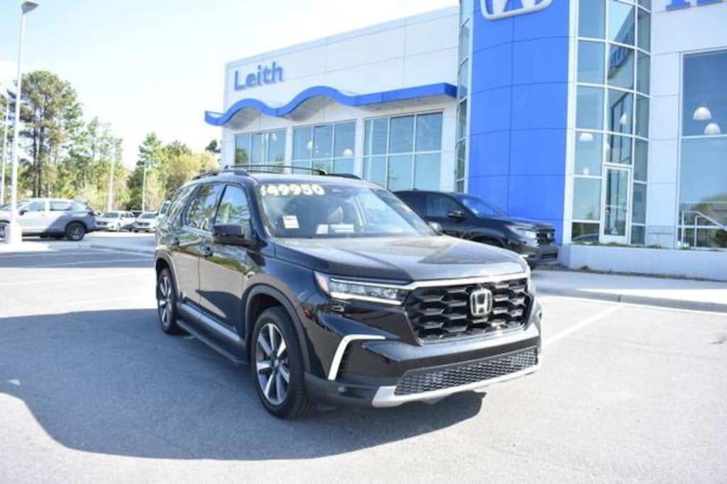 Crystal Black Pearl 2025 Honda Pilot Elite AWD 3.5L V6 DOHC 24V AWD, 12 Speakers, 3rd row seats: split-bench, 4-Wheel Disc Brakes, 4.167 Axle Ratio, ABS brakes, Adaptive Cruise Control: Adaptive Cruise Control (ACC) with Low-Speed Follow, Air Conditioning, Alloy wheels, AM/FM radio: SiriusXM Ready, Apple CarPlay/Android Auto, Auto High-beam Headlights, Auto-dimming door mirrors, Auto-dimming Rear-View mirror, Automatic temperature control, Blind Spot Information (BSI) System warning, Bose Premium Sound System, Brake assist, Bumpers: body-color, Compass, Delay-off headlights, Dual front impact airbags, Dual front side impact airbags, Electronic Stability Control, Emergency communication system: HondaLink, Exterior Parking Camera Rear, Four wheel independent suspension, Front anti-roll bar, Front dual zone A/C, Front fog lights, Fully automatic headlights, Garage door transmitter: HomeLink, Heads-Up Display, Heated and Ventilated Front Bucket Seats, Heated door mirrors, Heated front seats, Heated rear seats, Heated steering wheel, Honda Satellite-Linked Navigation System, HondaLink Subscription Services, Illuminated entry, Knee airbag, Lane departure: Lane Keeping Assist System (LKAS) active, Low tire pressure warning, Memory seat, Navigation system: Honda Satellite-Linked Navigation System, Occupant sensing airbag, Outside temperature display, Overhead airbag, Panic alarm, Perforated Leather Seat Trim, Power door mirrors, Power driver seat, Power Liftgate, Power moonroof, Power passenger seat, Power steering, Power windows, Radio data system, Rain sensing wipers, Rear air conditioning, Rear anti-roll bar, Rear seat center armrest, Rear window defroster, Rear window wiper, Reclining 3rd row seat, Remote keyless entry, Security system, SiriusXM, Speed control, Speed-sensing steering, Speed-Sensitive Wipers, Split folding rear seat, Spoiler, Steering wheel mounted audio controls, Tachometer, Telescoping steering wheel, Tilt steering wheel, Traction control, Trip computer, Turn signal indicator mirrors, Variably intermittent wipers, Ventilated front seats, Wheels: 20" Shark Gray Machine Face with Black Lug Nuts.