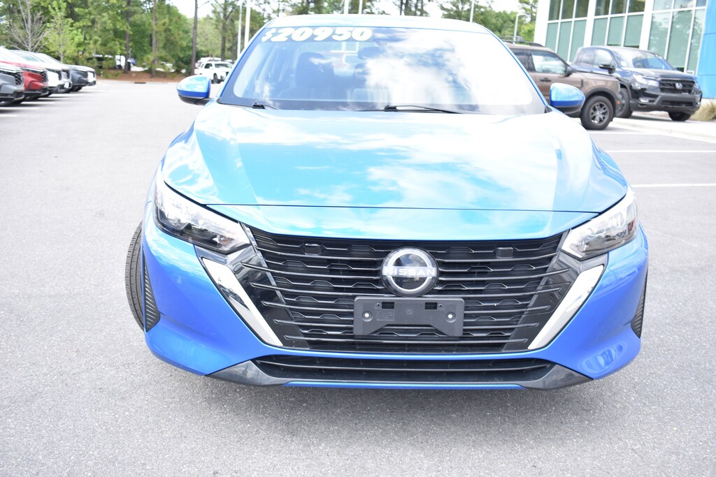 Clean CARFAX. CARFAX One-Owner. Electric Blue Metallic 2025 Nissan Sentra SV FWD CVT with Xtronic 2.0L I4 DOHC 16" Alloy Wheels, 4-Wheel Disc Brakes, 8 Speakers, ABS brakes, Air Conditioning, Alloy wheels, AM/FM radio: SiriusXM, Auto High-beam Headlights, Blind Spot Warning, Brake assist, Bumpers: body-color, Delay-off headlights, Dual front impact airbags, Dual front side impact airbags, Electronic Stability Control, Four wheel independent suspension, Front anti-roll bar, Fully automatic headlights, Illuminated entry, Knee airbag, Low tire pressure warning, Nissan Connect Services, NissanConnect featuring Apple CarPlay and Android Auto, NissanConnect Services, Occupant sensing airbag, Outside temperature display, Overhead airbag, Panic alarm, Power door mirrors, Power steering, Power windows, Radio data system, Radio: AM/FM with RDS/MP3/Aux-in, Rear anti-roll bar, Rear Parking Sensors, Rear side impact airbag, Rear window defroster, Remote keyless entry, Security system, Speed control, Speed-sensing steering, Split folding rear seat, Steering wheel mounted audio controls, Tachometer, Telescoping steering wheel, Tilt steering wheel, Traction control, Trip computer, Upgraded Cloth Seat Trim, Variably intermittent wipers, Wi-Fi Hotspot.