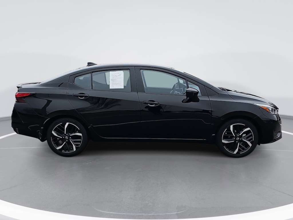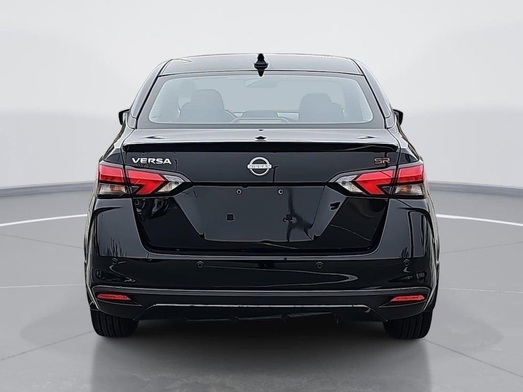 Super Black Metallic 2025 Nissan Versa 1.6 SR FWD 1.6L I4 DOHC 16V 17" Aluminum Alloy Wheels, Apple CarPlay/Android Auto, Auto High-beam Headlights, Blind Spot Warning, Heated door mirrors, Heated front seats, Leather steering wheel, Outside temperature display, Panic alarm, Rear Parking Sensors, Splash Guards, Trunk Net, Trunk Package.