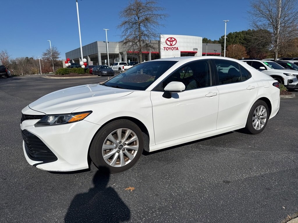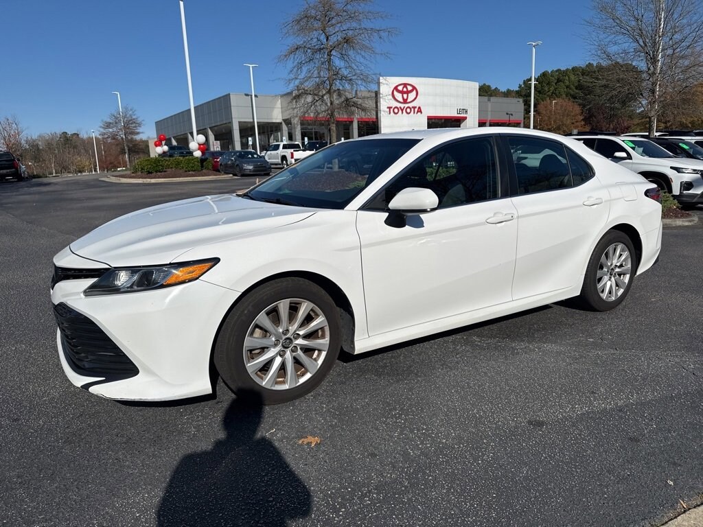 Clean CARFAX. CARFAX One-Owner. Super White 2018 Toyota Camry LE FWD 8-Speed Automatic 2.5L I4 DOHC 16V AS IS CAR, LOCAL TRADE IN, BACK UP CAMERA, PRE-COLLISION SYSTEM W PEDESTRIAN DETECTION, FULL-SPEED RANGE DYNAMIC RADAR CRUISE CONTROL, LANE DEPARTURE ALERT W STEERING ASSIST, APPLE CARPLAY & ANDROID AUTO, 1-OWNER, NO ACCIDENTS, MUST SEE!, Black w/Fabric Seat Trim, 7.5J x 17 Alloy Wheels, Air Conditioning, Fabric Seat Trim, Four wheel independent suspension, Front Center Armrest, Power driver seat, Power steering, Power windows, Radio: Entune 3.0 Audio, Rear window defroster, Steering wheel mounted audio controls, Telescoping steering wheel, Traction control.